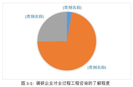 根據訪談資料整理和調查問卷統計分析結果來看,多數企業對全過程工程咨詢有初步的了解,少部分企業對全過程工程咨詢完全不了解,個別龍頭企業對全過程工程咨詢模式有很深的了解。在訪談中,多家設計院對全過程工程咨詢模式的服務內容、組織模式構建、全過程工程咨詢模式與其他模式的區別方面都存在一定困惑。了解程度大多數停留在國家相關政策文件對全過程工程咨詢的概念性描述。