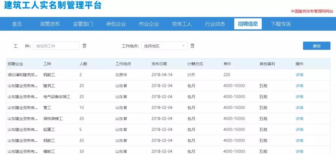 除此之外,還有一個亮點,就是建筑勞務“招聘信息”板塊。有勞務需求的企業,可以在此發布相關需求及薪資待遇。