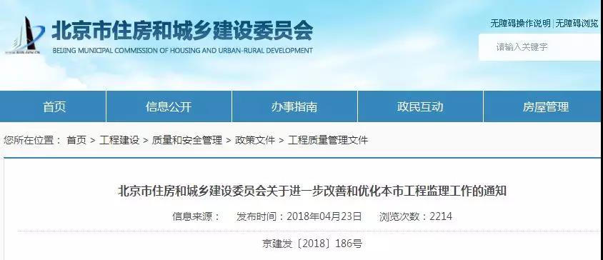 近日,監理改革再下一城。繼上海發文,北京市住建委發通知要求進一步改善和優化本市工程監理工作,主要內容如下: