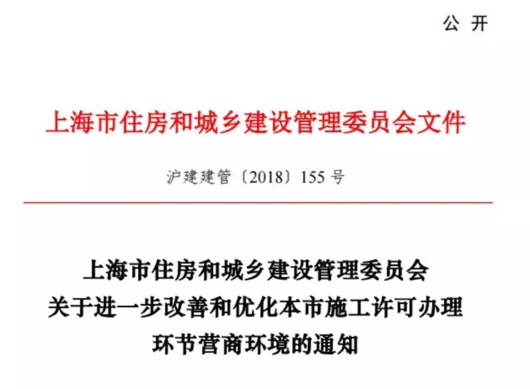 為進一步改善和優化本市營商環境,加快轉變政府職能, 根據《上海市人民政府辦公廳關于印發<進一步深化本市社會投資項目審批改革實施辦法>的通知》(滬府辦發〔2018〕4 號)精神,結合世界銀行營商環境測評意見和本市實際情況,現對 進一步改善和優化本市施工許可辦理環節營商環境通知如下: