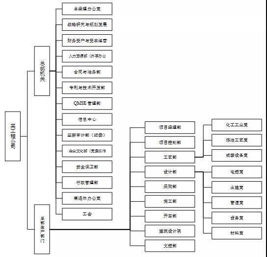 注:該公司組織結(jié)構(gòu)以總承包項目運營為核心建立,組織結(jié)構(gòu)包括職能部門、總承包業(yè)務(wù)管理部門、專業(yè)技術(shù)部門三個層次。