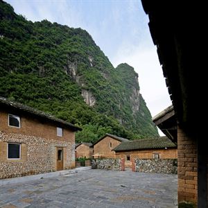 從陽朔縣城開車沿著漓江向桂林方向走,周圍都是成片的農舍。它們散落在喀斯特地貌的山腳下,保持著原汁原味的土坯房的樣子。“云廬”酒店就隱藏在這些農舍中間,如果不仔細尋找,一定就錯過了。