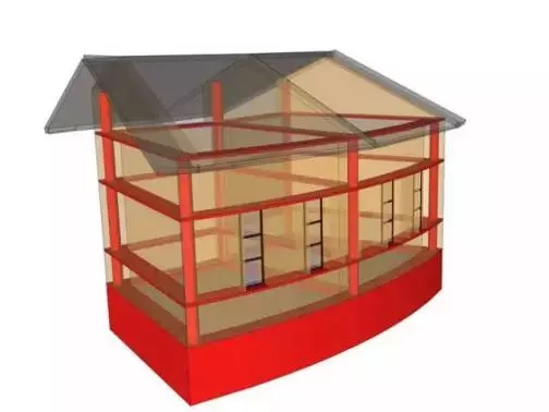紅色部分代表地基、構造柱和圈梁,形成一個具有整體性的框架結構