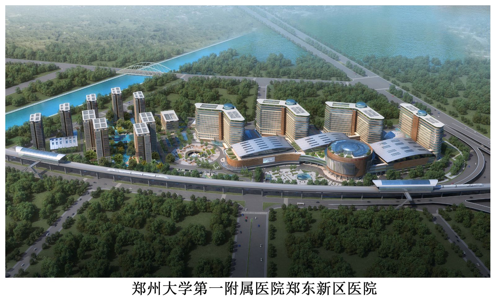 新建的鄭州大學第一附屬醫院鄭東新區醫院位于鄭州市龍湖中環南路西北三環路南,是河南省重點大型項目,用地面積167321.23,建筑面積784157.78 m2,病床位3000位。