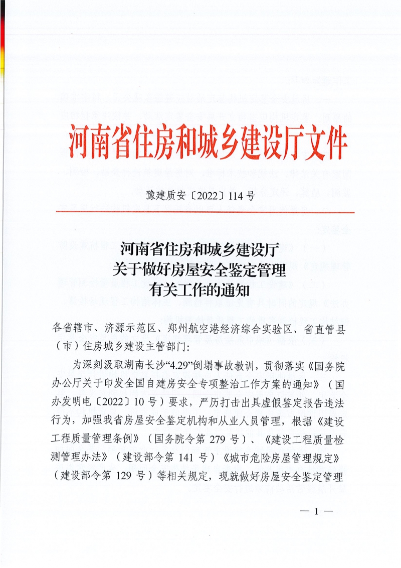省住建廳關于做好房屋安全鑒定管理有關工作的通知
