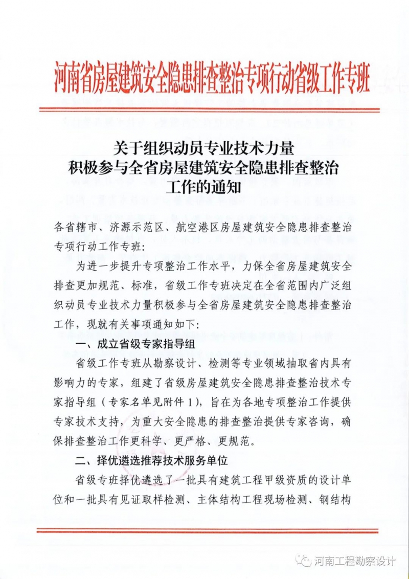河南省公布省級房屋建筑安全隱患排查整治技術專家名單以及專業技術服務單位名單