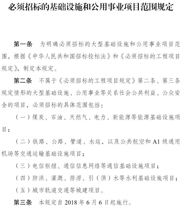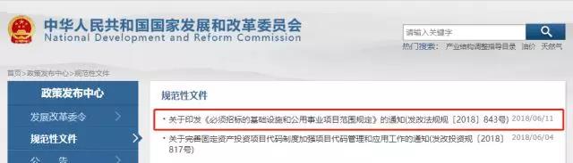 6月11日,發改委網站發布了《國家發展改革委關于印發<必須招標的基礎設施和公用事業項目范圍規定>的通知》。