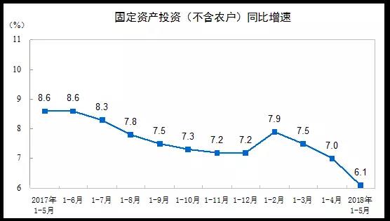6月14日,國家統計局發布了2018年1~5月份全國固定資產投資(不含農戶)數據。