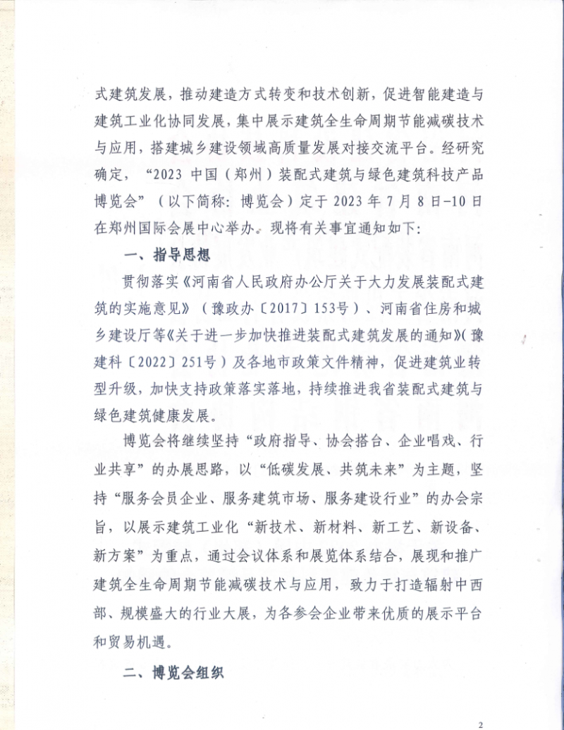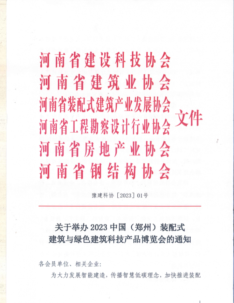 關于舉辦2023中國(鄭州)裝配式建筑與綠色建筑科技產品博覽會的通知