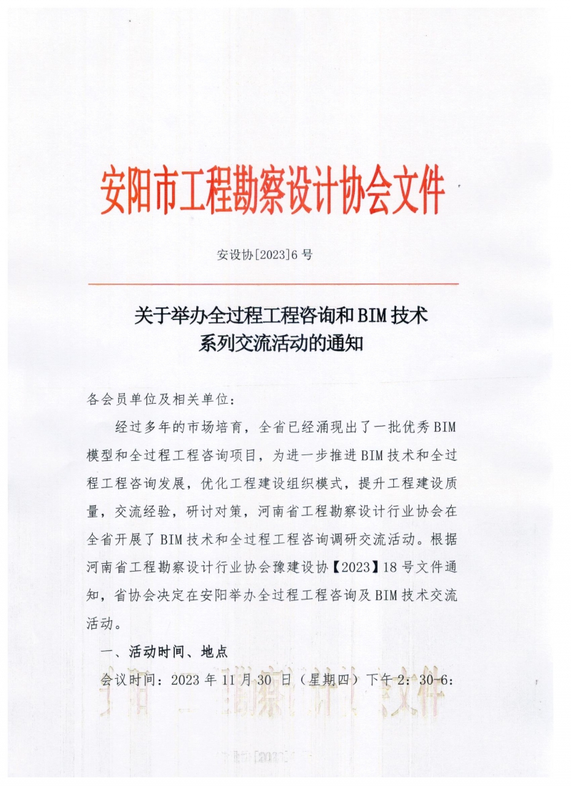關于舉辦全過程工程咨詢和BIM技術系列交流活動(安陽站)的通知