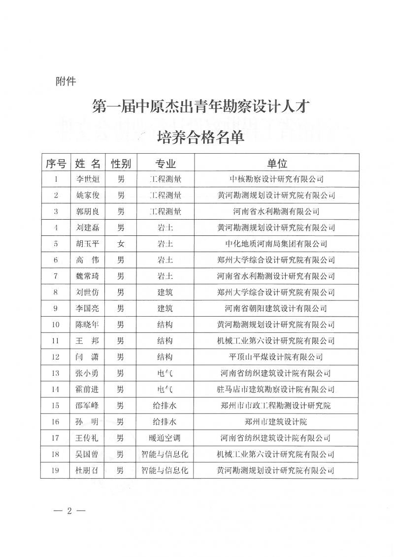 附件:第一屆中原杰出青年勘察設計人才培養合格名單
