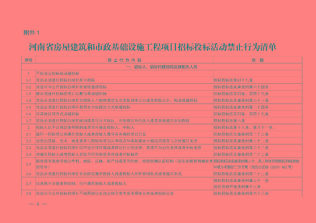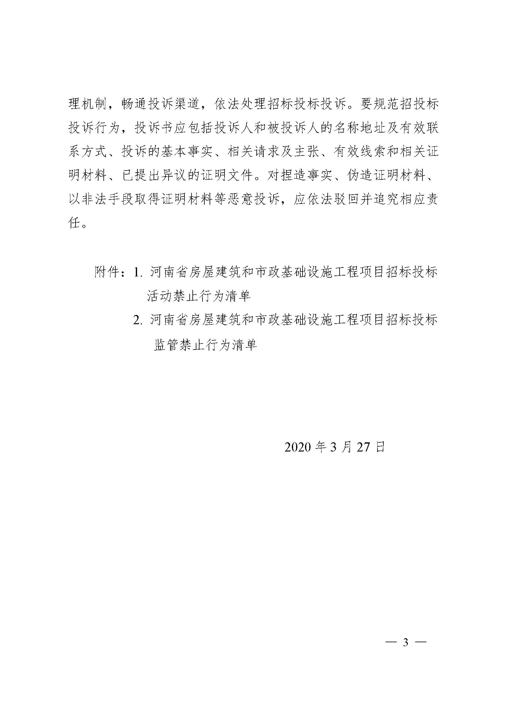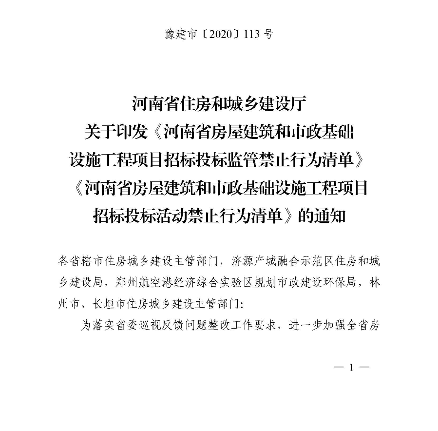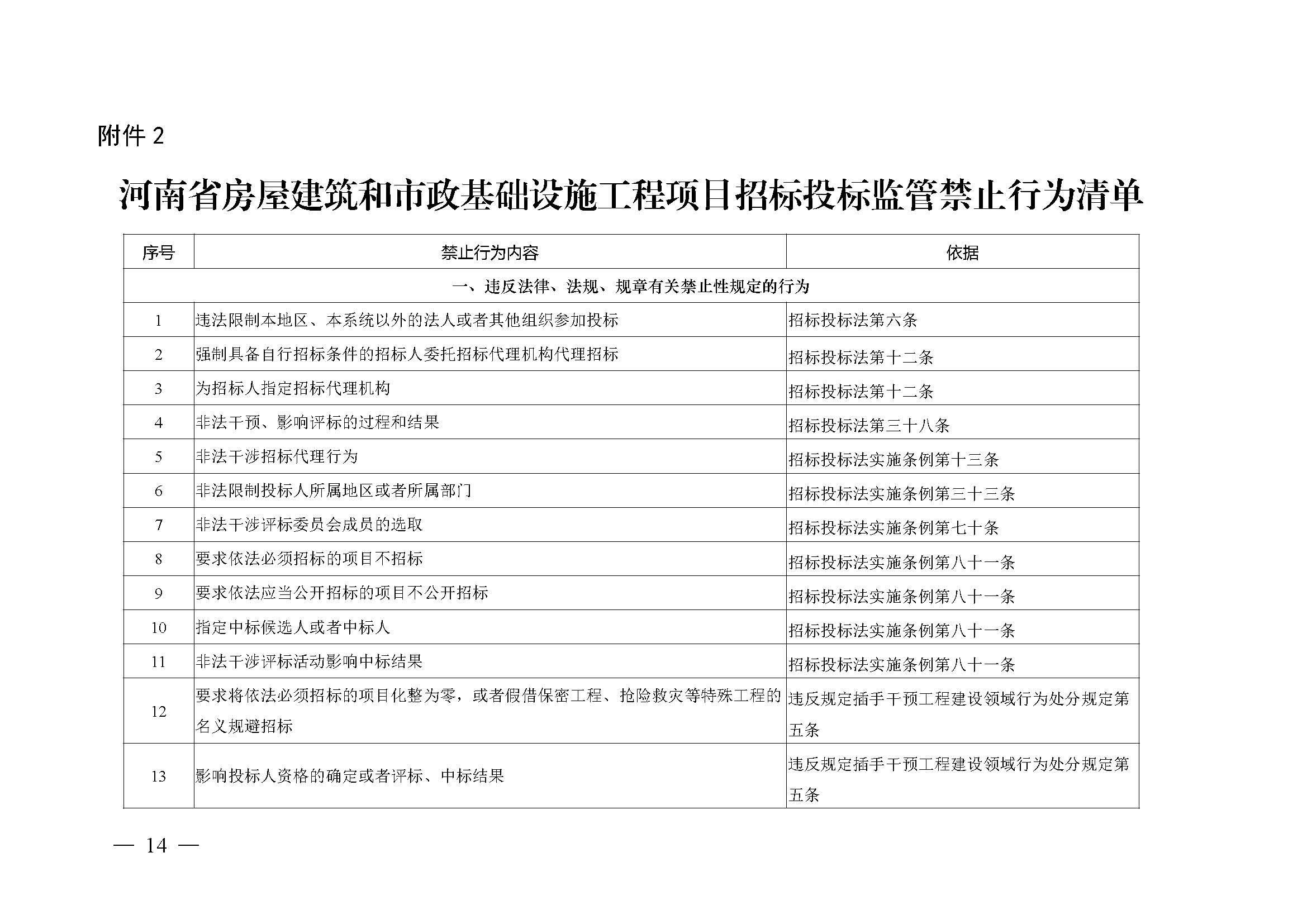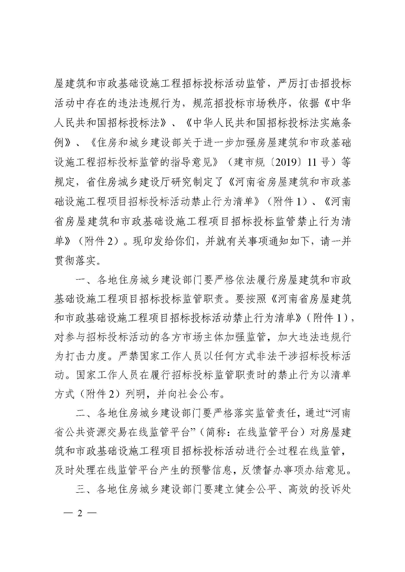 省住建廳關于印發(fā)《河南省房屋建筑和市政基礎設施工程項目招標投標監(jiān)管禁止行為清單》《河南省房屋建筑和市政基礎設施工程項目招標投標活動禁止行為清單》的通知