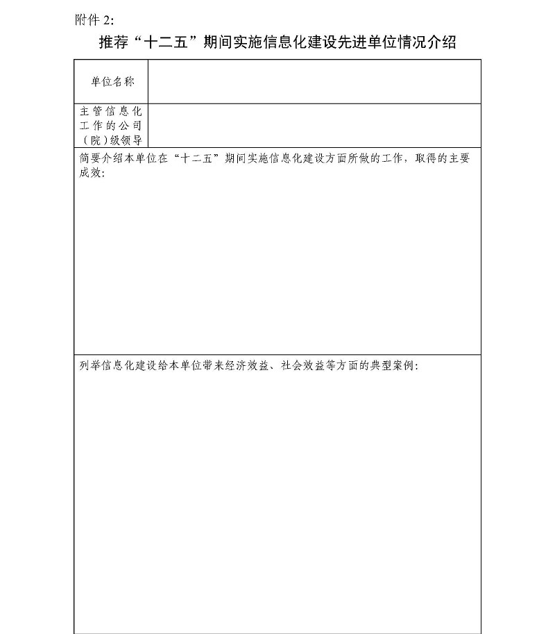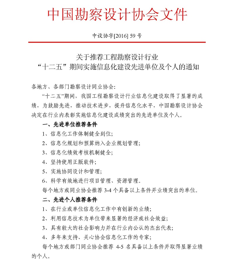 附件:關于推薦工程勘察設計行業“十二五”期間實施信息化建設先進單位及個人的通知